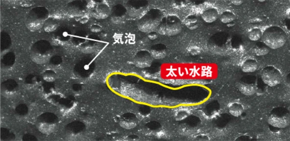 ゴムの気泡で水を除去
